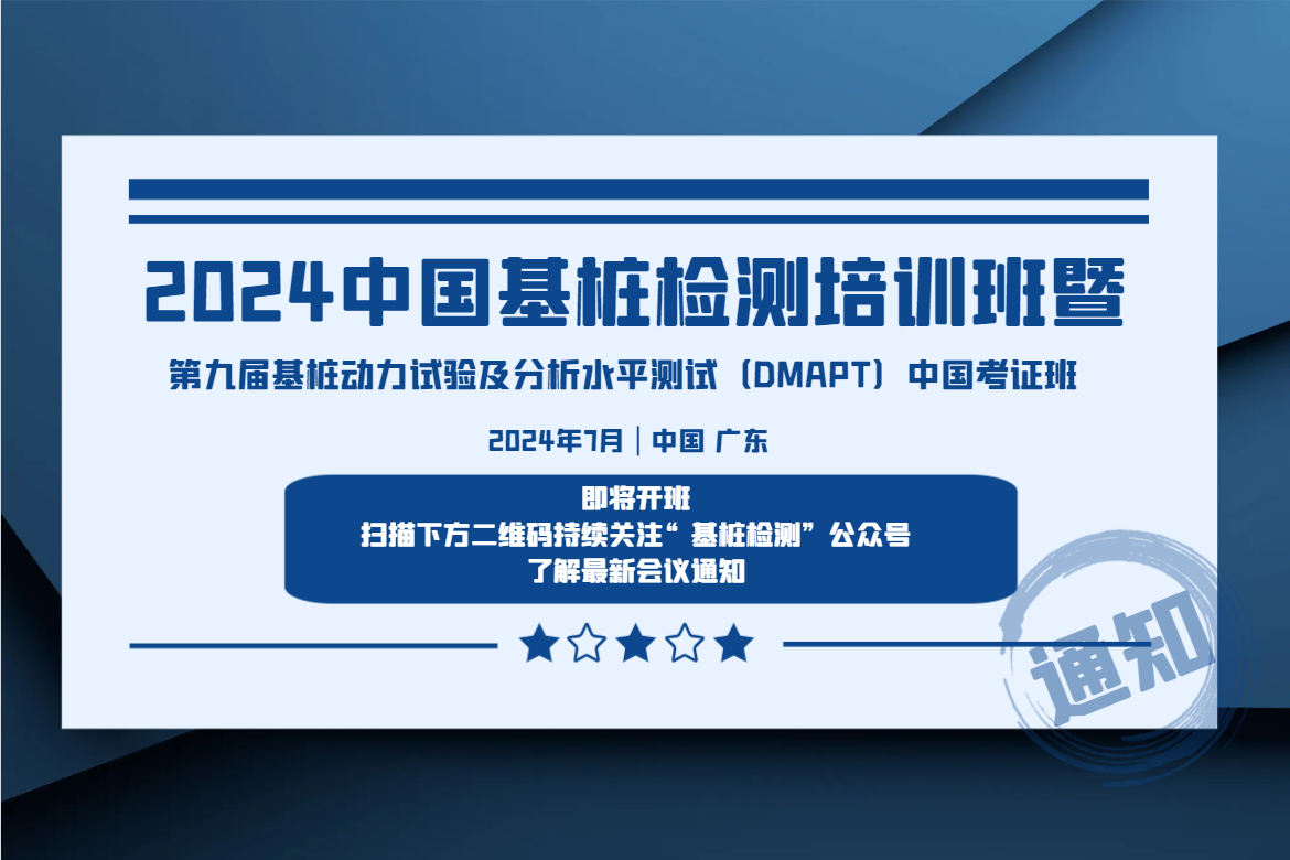 2024中國基樁檢測培訓(xùn)班暨第九屆基樁動(dòng)力試驗(yàn)及分析水平測試(DMAPT)中國考證班將在花城廣州7月開班,考試回歸線下,最新消息請持續(xù)關(guān)注“基樁檢測微信公眾號”獲取最新會議信息。